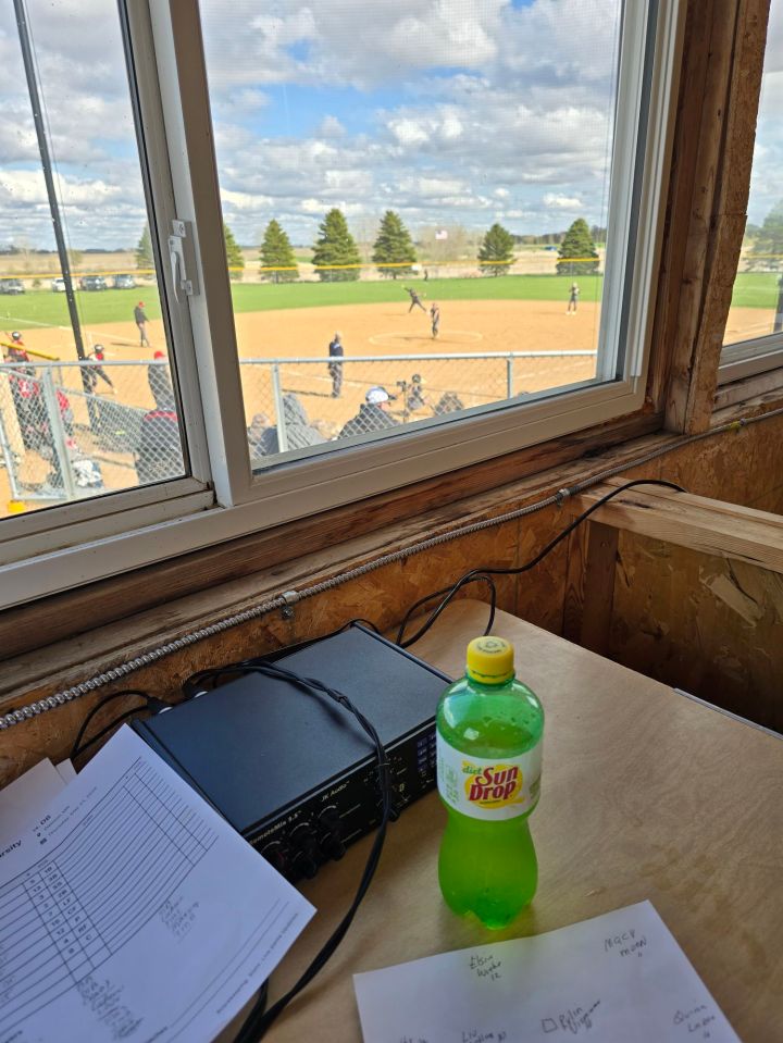 I made the climb up into the press box and set up the radio equipment and started to fill out my scorebook with names and positions. Amber Lee came up to the press box and handed me a small cordless microphone to attach to my shirt collar. She informed me that my play by play would be broadcast on the YouTube channel with the video streaming of the games. I’ve done this before but not often. The thing I need to remember is that when I take a commercial break on the radio I’m still live on YouTube. This is where the problem and embarrassing part comes in.