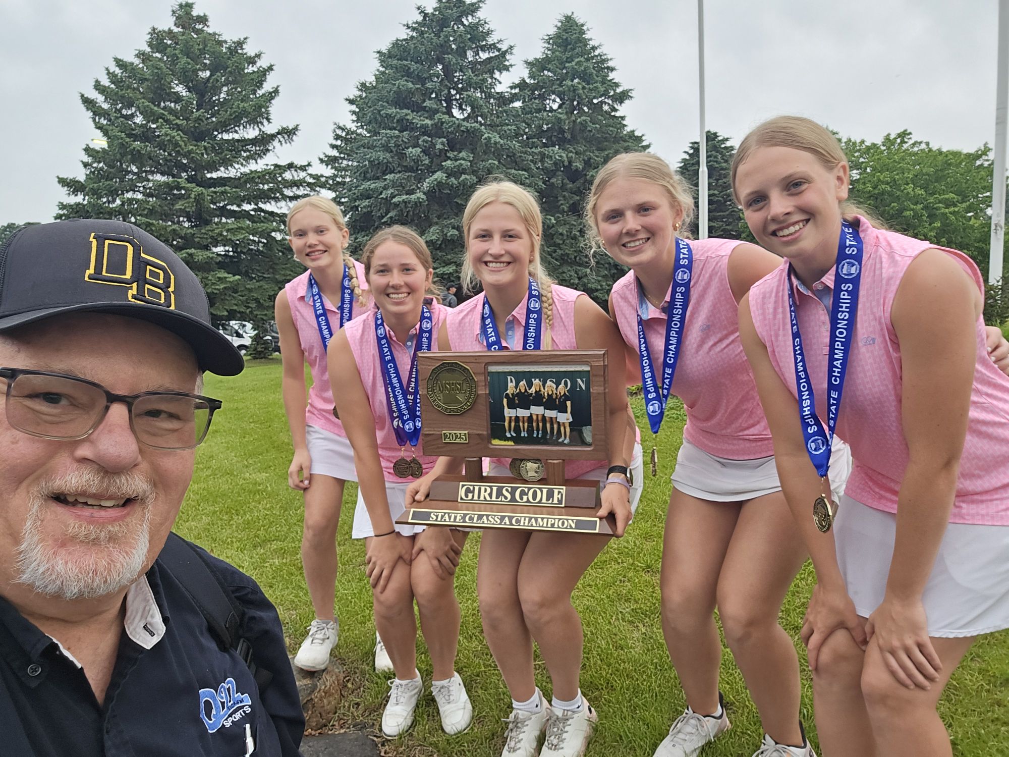 To no one’s surprise the Dawson-Boyd girls won the state championship for the second year in a row. These girls love each other and it shows. What a team! Lindsey Lund, Allyssa Swedzinski, Claire Stratmoen, Kylar Hjelmeland and Laura Schreier. Lindsey also was the Class A individual champion for the second year in a row. She is such a kind person and very humble and gives great radio interviews. I’m going to miss her next year and her mom’s cookies. Coach Larson has won two state championships this year! While interviewing Cory, you could tell he was pretty happy with what the girls have accomplished. I told Allyssa, with Lindsey graduating, she is the leader now! Go get a 3rd championship next year.