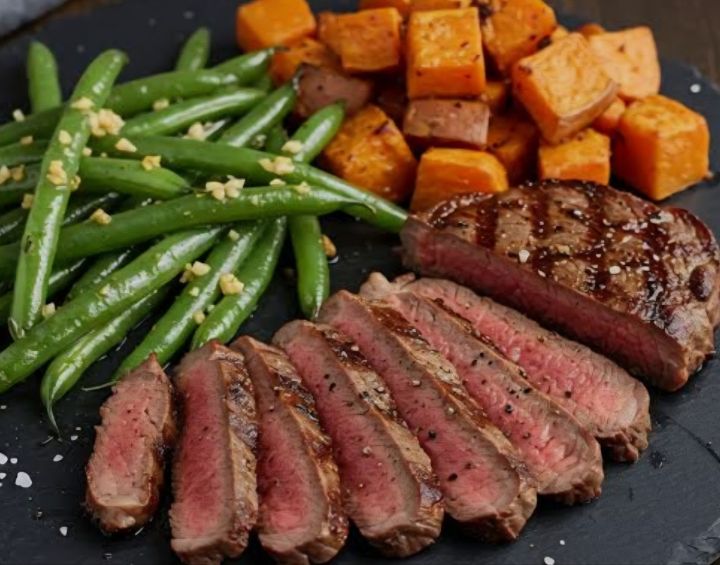 - Steak and a sweet potato with green beans (My mom would be proud).