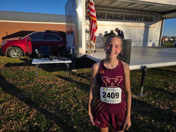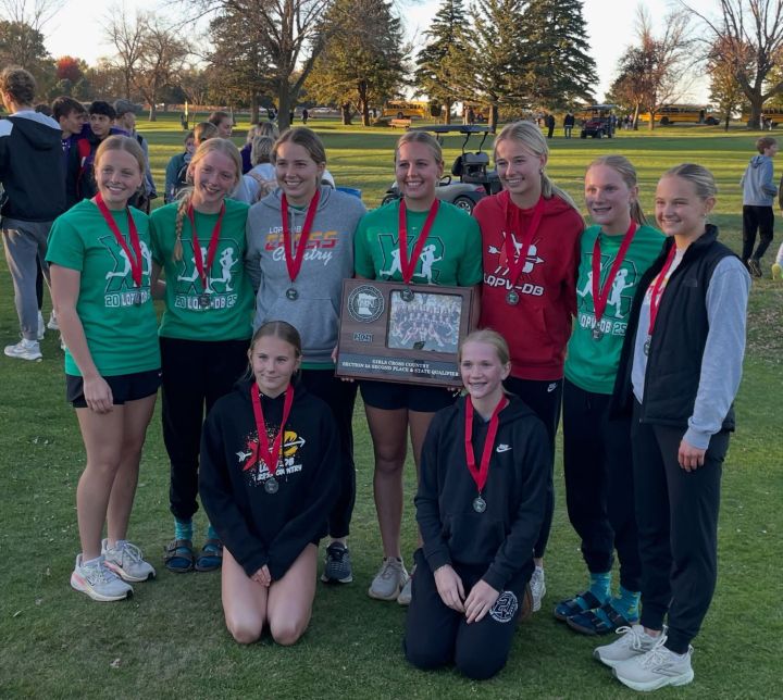 On Thursday, I was at the Madison Country Club for the Section 3A Cross Country meet. With over 100 runners for both the girls’ and boys’ races, there were lots of people watching. KLQP broadcasted the awards ceremony and did interviews afterward. A fun interview was with the winner of the girls’ race, Elsie Leopold, a 9th grader who ran the 3.1 miles in a personal best of 19 minutes and 9 seconds. The LQPV-DB girls placed second and are going to state! The girls were ecstatic when we had them on the radio. It was also great to catch up with my friend PJ from Wabasso, he does a great job covering Rabbit sports and Samantha, who writes for the Marshall Newspaper.