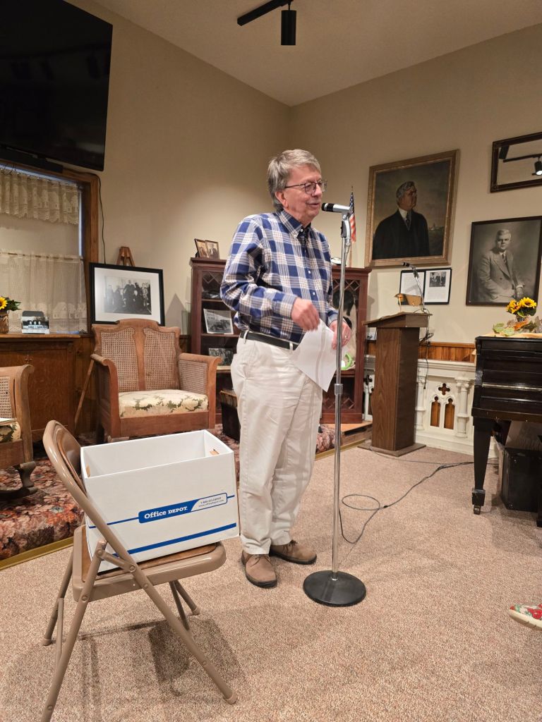 On Sunday afternoon, I had the pleasure of joining Maynard to speak about the history of KLQP radio. We were invited to the LQP County Historical Society annual meeting, which was held at the LQP Museum with a great turnout. Giving a microphone to two radio guys—they’re pretty brave!