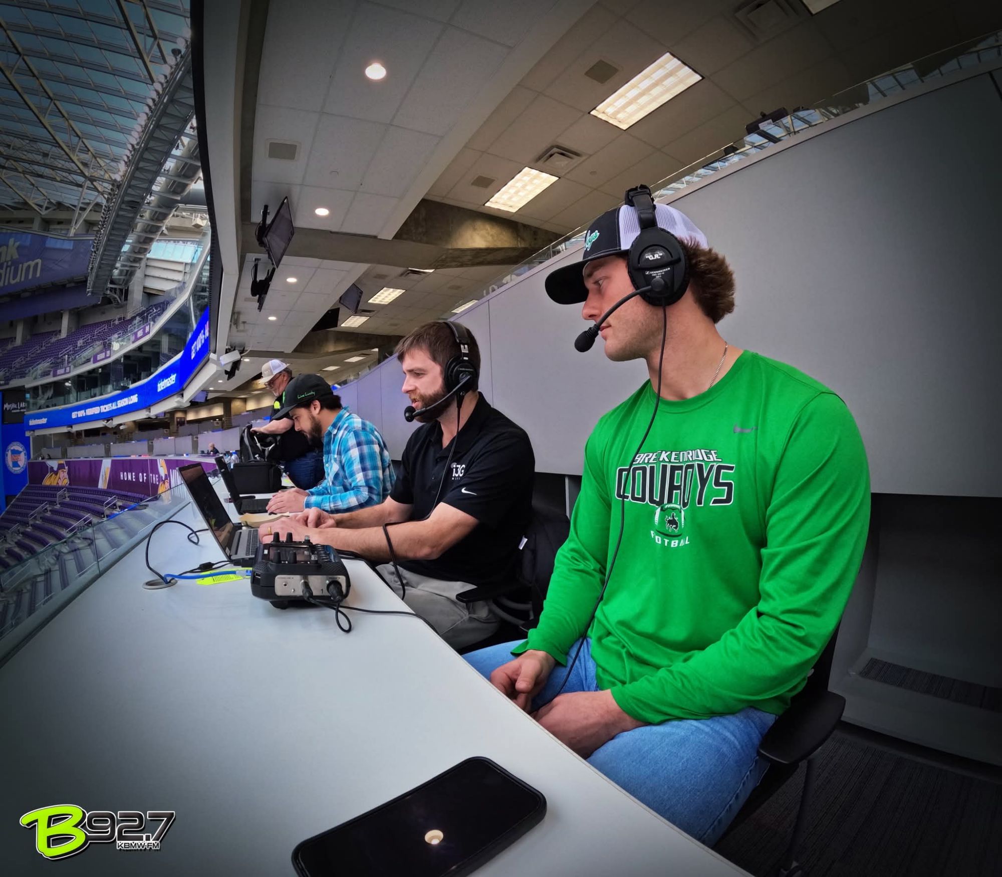 Media pass secured, I made my way to the elevators and up to Section 124. I arrived at the press box area around 9:00 AM, an hour before kickoff. It was great to visit with the radio crews from Breckenridge and Josh from Marshall before the game began.