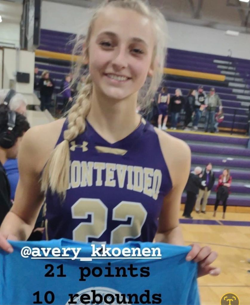 Avery was nothing short of spectacular, scoring 26 points and grabbing 13 rebounds. But the “pinch-me” moment was watching her score her 1,000th career point. I watched her play for Montevideo, and even broadcasted some of her games, while I knew she was gifted, seeing her dominate at the Division 1 level is amazing to watch. She has grown into a truly elite athlete.
