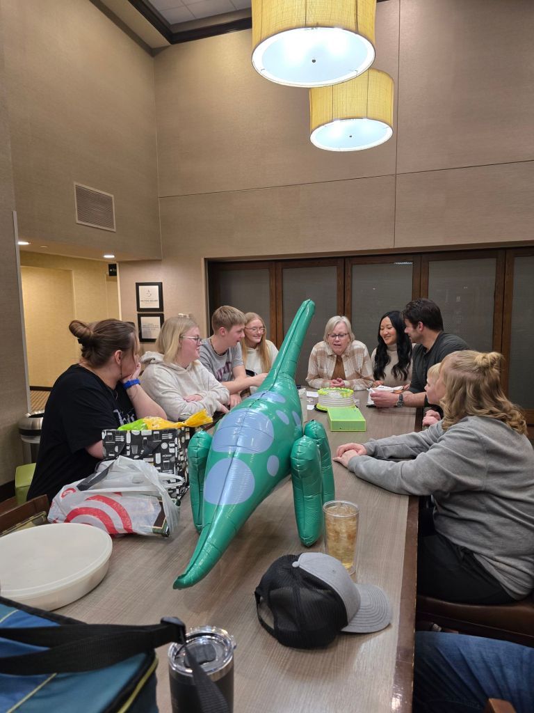 After dinner, we stayed at the Hampton Inn. Seth surprised us all with a dinosaur-themed birthday cake! I didn’t even know Brianna liked dinosaurs, but Seth, Zane, and Adelyn had a great time lighting all 40 candles. Brianna did an impressive job blowing them all out in one go.