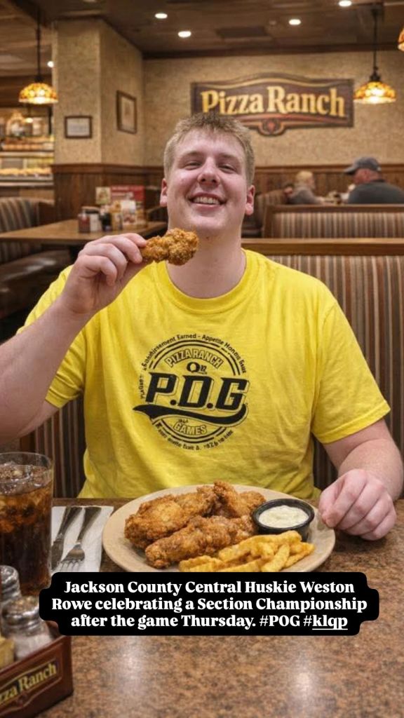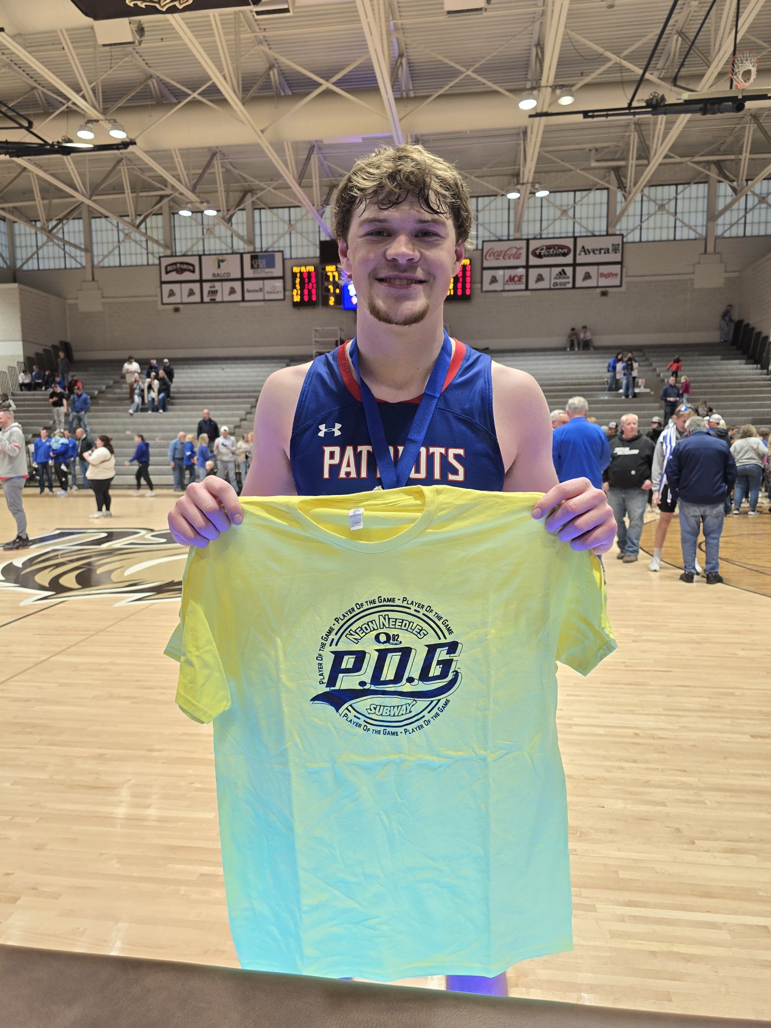 I had a fun moment visiting with Roman Voss after the game while giving him his Player of the Game T-shirt. A group of teenage girls from Morris were screaming for his attention to take a selfie, and despite the post-game rush, he took the time to go over and snap a photo. He’s a popular kid for a reason! I also chose Weston Rowe as a Player of the Game. A couple of days later, I saw a picture of him wearing that T-shirt while eating at the Pizza Ranch in Marshall. That was pretty cool to see.