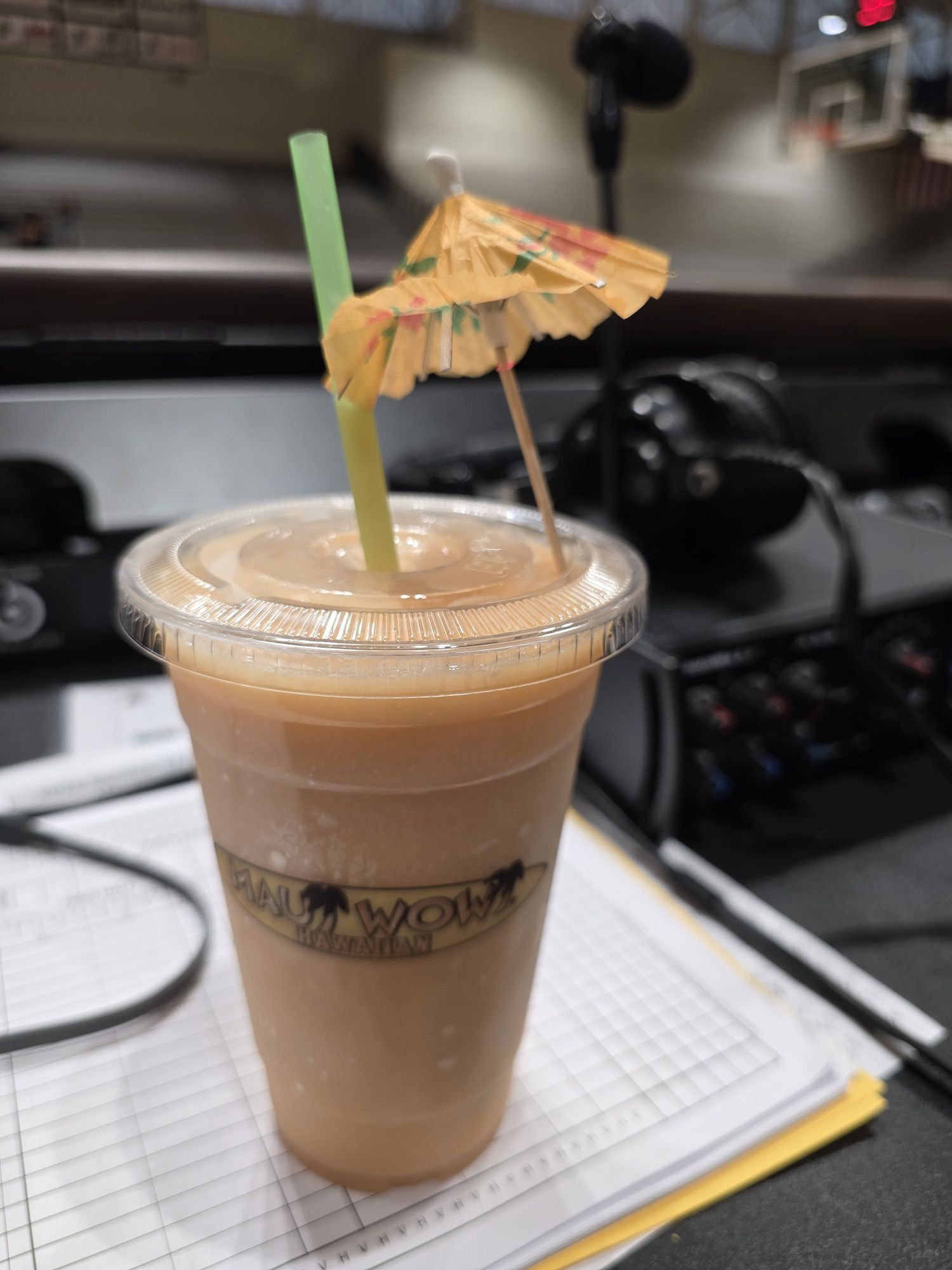 The other big highlight at the RA Facility happened on Thursday. My broadcast partner, Bart Hill, and I had some time to kill between games, so I went to grab a piña colada from Maui Wowi. As I was walking back to press row, I passed Bart while he was chatting with someone. I walked right between them, sat down, and started enjoying my drink.
