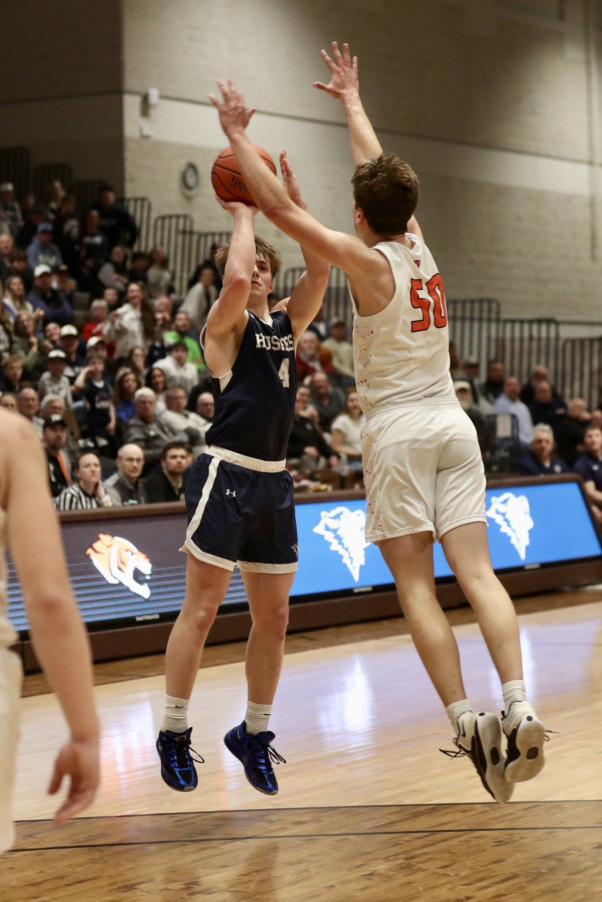 The Huskies won the state football championship last fall, and let me tell you, they have some football players who can really play hoops! Roman Voss, the number one football recruit in Minnesota who recently committed to the Gophers, is the real deal. Then there’s Weston Rowe, a big kid heading to South Dakota State to play football. JCC is a powerhouse; they not only beat Montevideo but also defeated an undefeated Morris team to reach state.