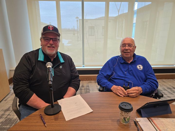 On Tuesday, I was invited to the Montevideo Veterans Home to share stories about my broadcasting career and my blog, Raymo’s Ramblings. Paul Stagg, who spent many years at WCCO Radio, is a resident there and hosts an in-house mock radio program in the theater every other Tuesday. Paul and I were seated up front with microphones in front of an audience of residents, spouses, and staff. Paul is a master host; he asked great questions about KLQP and my sports broadcasting, but to my surprise, he also wanted to dive into my blog! He told me he finds it fascinating and had a good laugh about the post where my wife banned me from starting campfires.