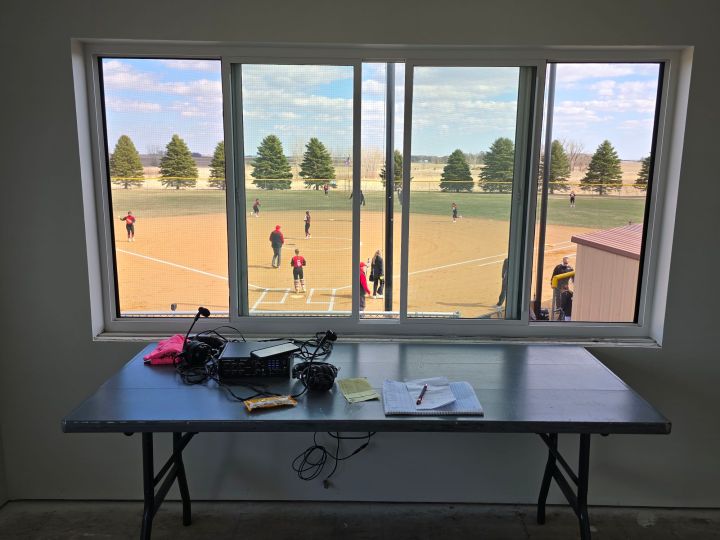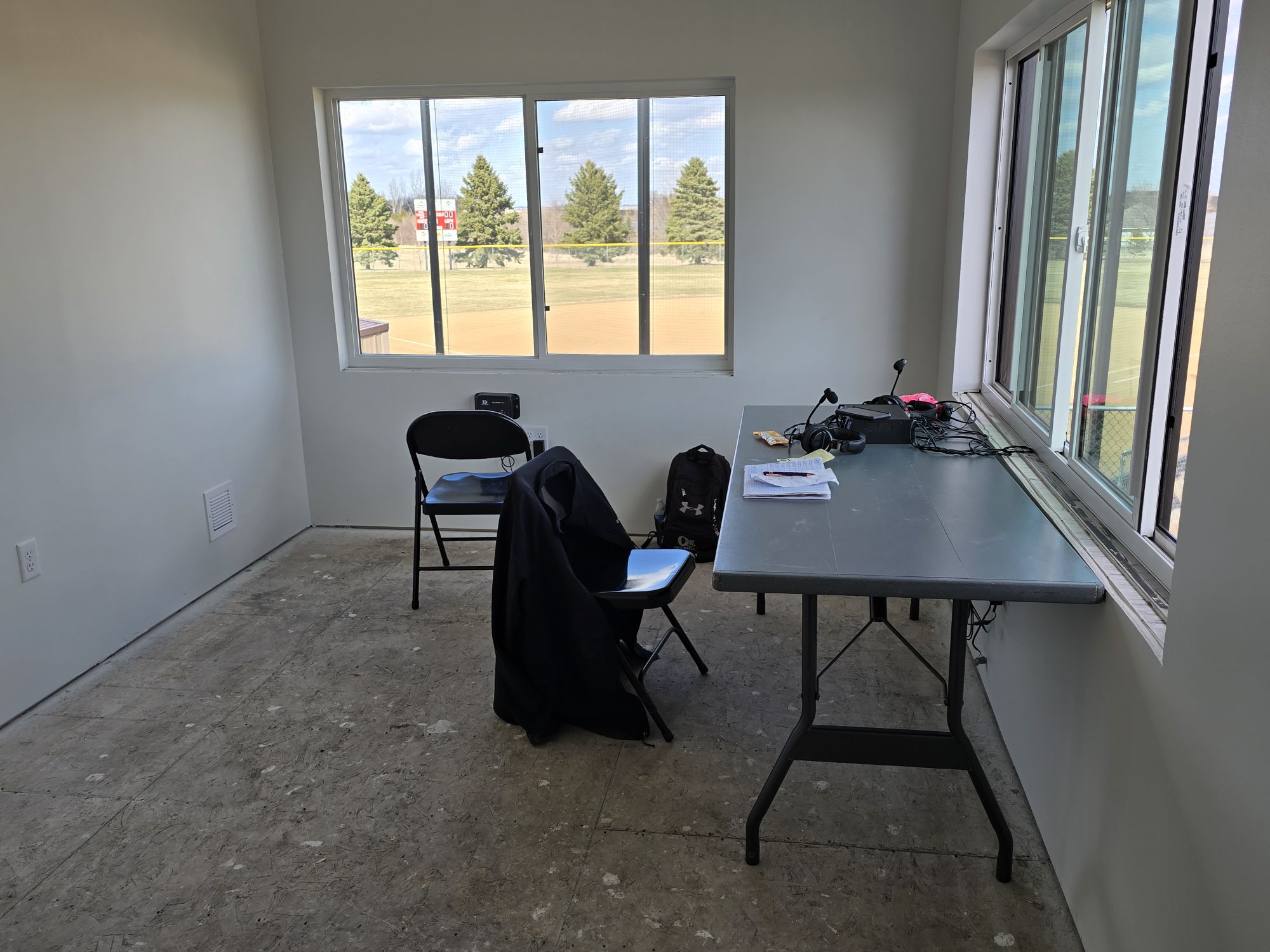 The rest of my work week involved broadcasting the Dawson-Boyd and Minneota baseball game in the cold and snow! By the last two innings, it was coming down pretty good, but the game pushed on with the Blackjacks winning 3-2 in the bottom of the 7th. On Friday, I found myself in the new softball press box at LQPV. They built a wonderful new concession stand with restrooms and a spacious press box with a great view of the fields.